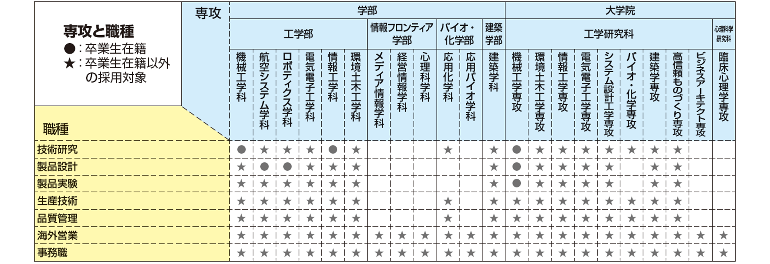 ※企業名をクリックすると、「各企業の紹介動画」「専攻と職種」がわかります!